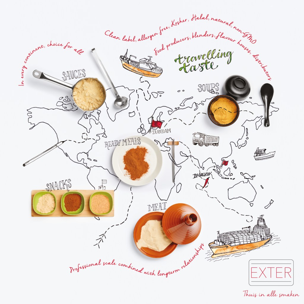 Exter is een smaakmaker: ze ontwikkelt hartige smaken en levert die wereldwijd aan producenten van voeding. B2B dus. Ze wil graag van haar technische en weinig onderscheidende uitstraling af en meer opvallen in de wereld van de smaakleveranciers.